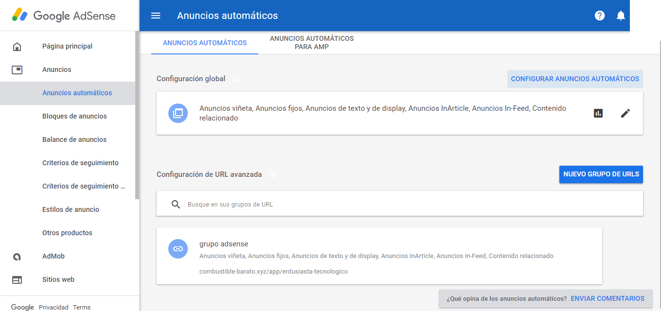 Debemos ir al apartado «Anuncios» y elegimos «Anuncios automáticos», una vez configurado le damos a «configurar anuncios automáticos» y copiamos el código.